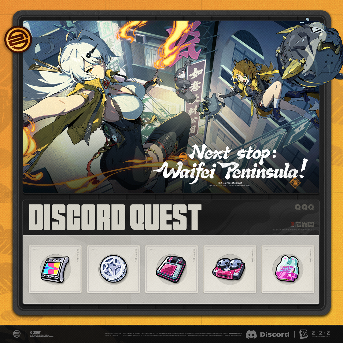 This event is subject to the Terms of Service and Privacy Policy of Discord and Zenless Zone Zero. Before participating in this event, you must fully understand and agree to abide by the aforementioned terms and policies.