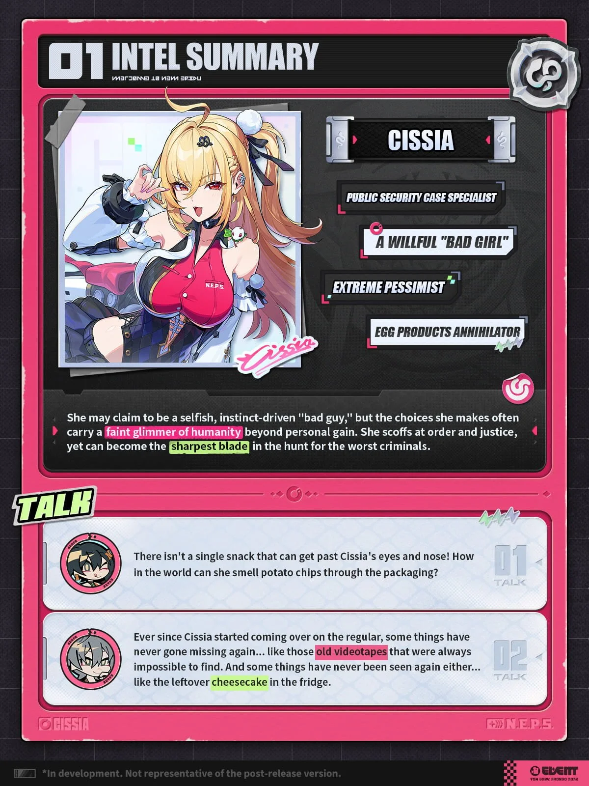 Unarchived Agent Footage | Cissia zenless zone zero Apr 9 Written By Animon "I just know one thing — if I like it, I sink my teeth in and don't let go~" zenless zone zero Animon