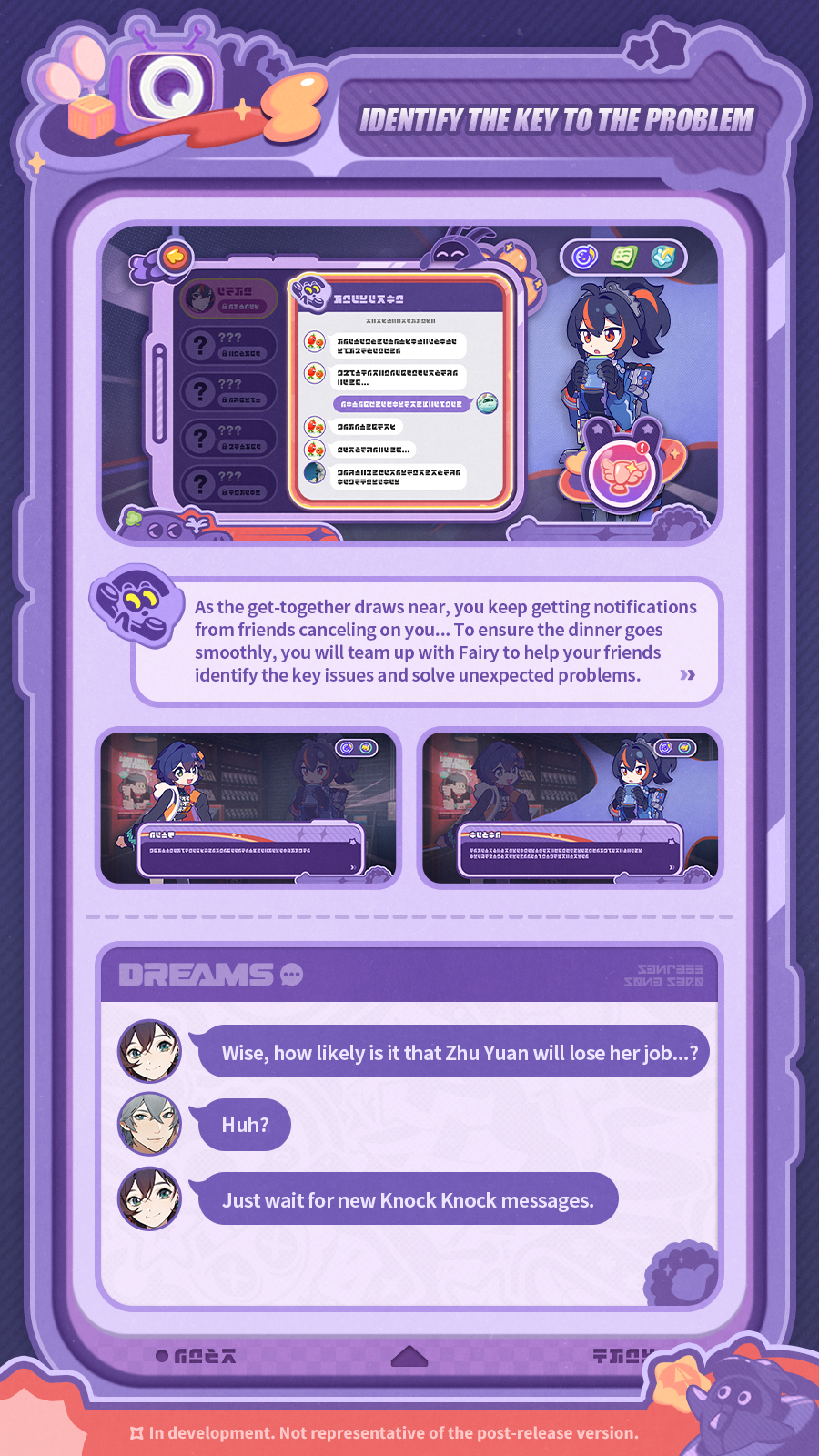 As the get-together draws near, you keep getting notifications from friends canceling on you... To ensure the dinner goes smoothly, you will team up with Fairy to help your friends identify the key issues and solve unexpected problems.