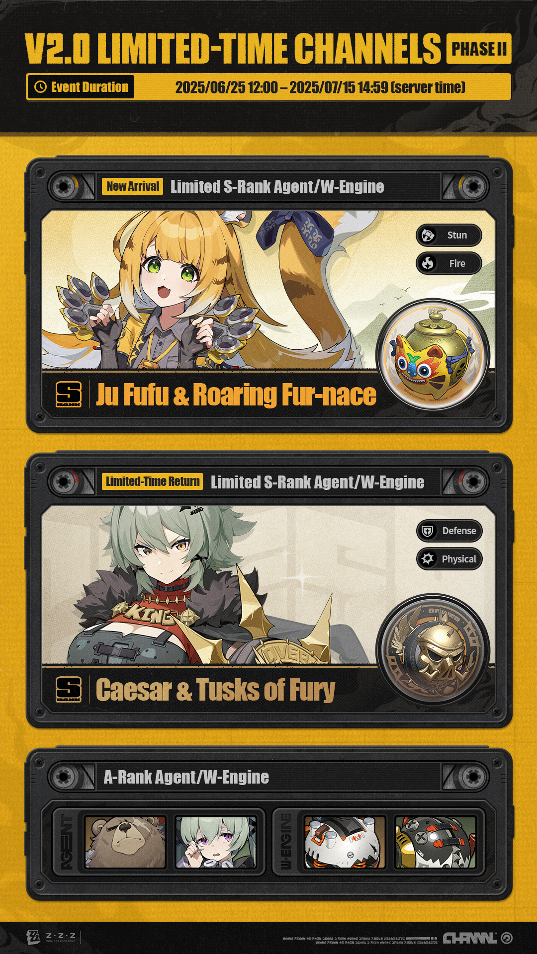 A-Rank Agents Corin (Attack - Physical) & Ben (Defense - Fire) and limited S-Rank Agent Ju Fufu (Stun - Fire) have greatly increased Reception Rates during the event!